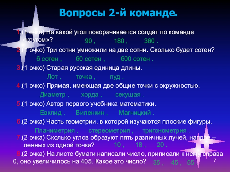 6.(2 очка) Часть геометрии, в которой изучаются плоские фигуры.