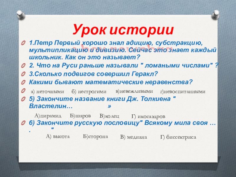 Это сайт презентаций, где можно хранить и обмениваться своими презентациями, докладами, проектами, шаблонами в формате PowerPoint с другими пользователями. Мы помогаем школьникам, студентам, учителям, преподавателям хранить и обмениваться учебными материалами.