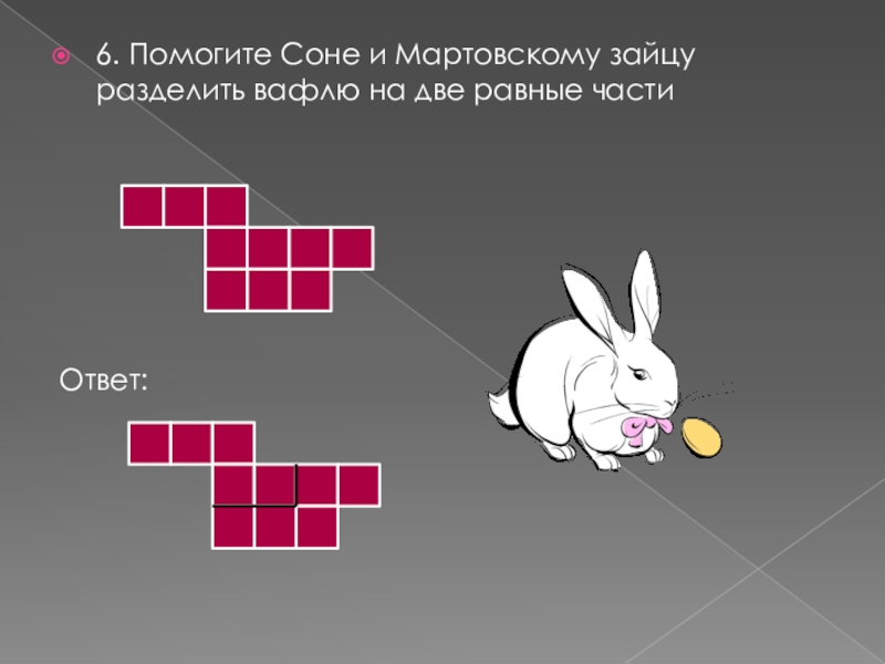 6. Помогите Соне и Мартовскому зайцу разделить вафлю на две равные частиОтвет: