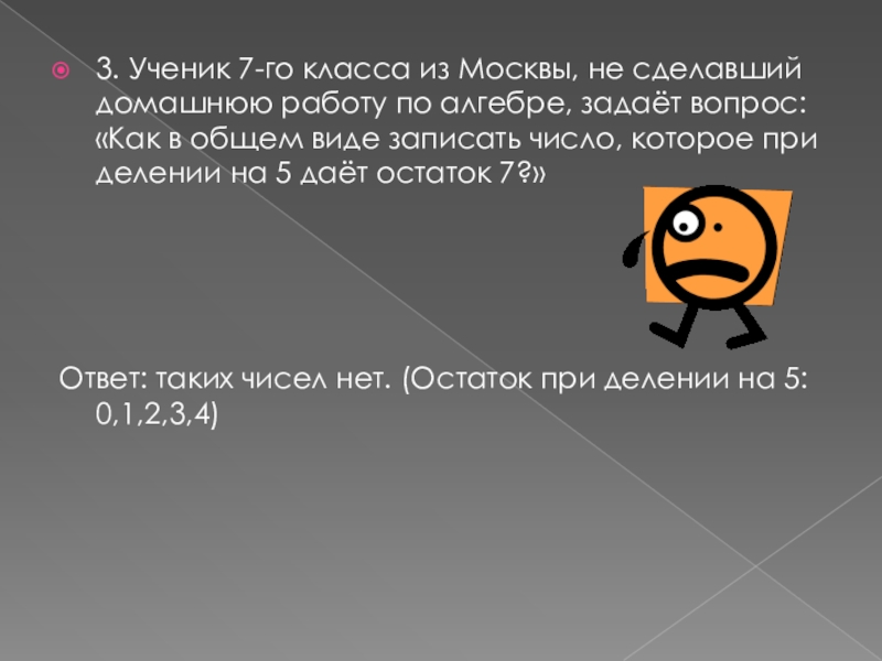 Слайд 43. Ученик 7-го класса из Москвы, не сделавший домашнюю работу по