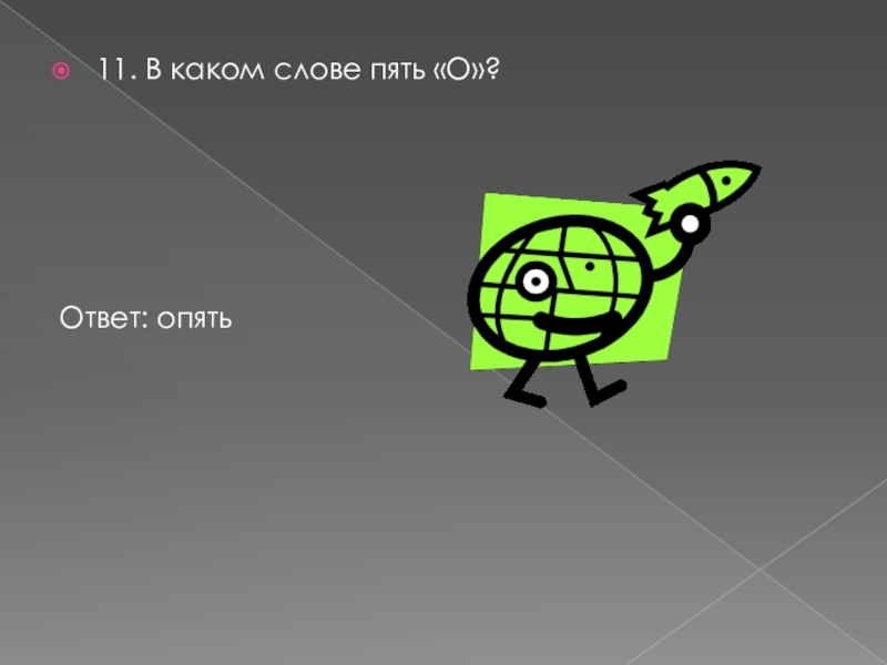 11. В каком слове пять «О»?Ответ: опять