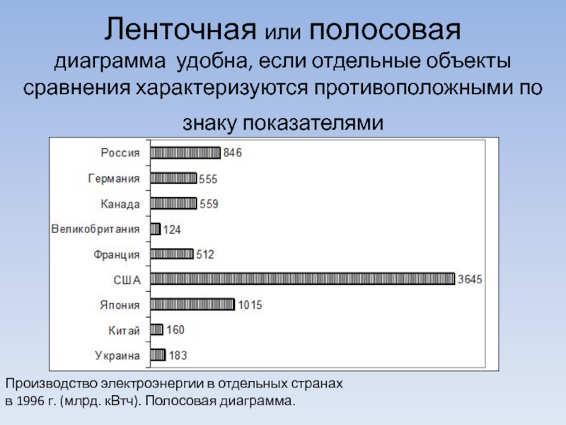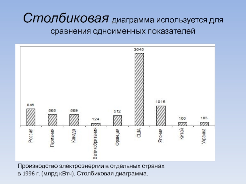 в 1996 г. (млрд. кВтч). Полосовая диаграмма.