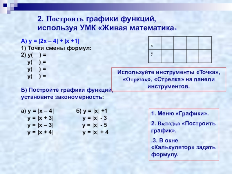 1.Точки смены формул: Х-2=0, Х=2; Х=0