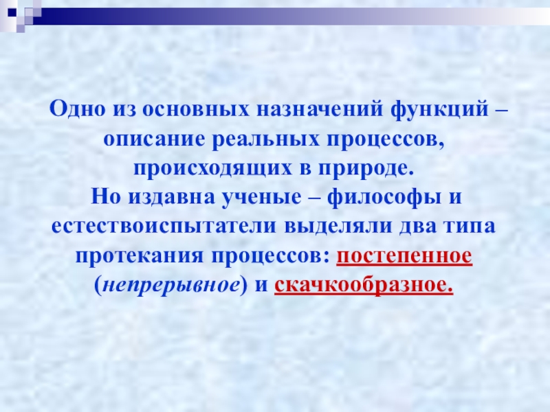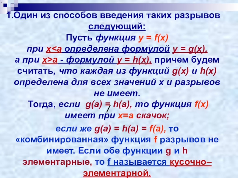 Но раз есть разрывные процессы, то необходимы средства их описаний. С этой целью вводятся в действие функции, имеющие разрывы.