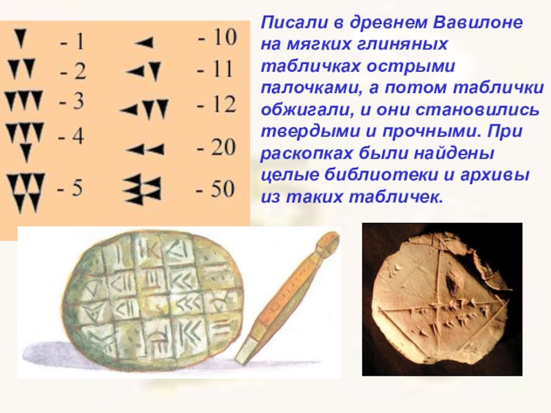 Слайд 19Писали в древнем Вавилоне на мягких глиняных табличках острыми палочками, а