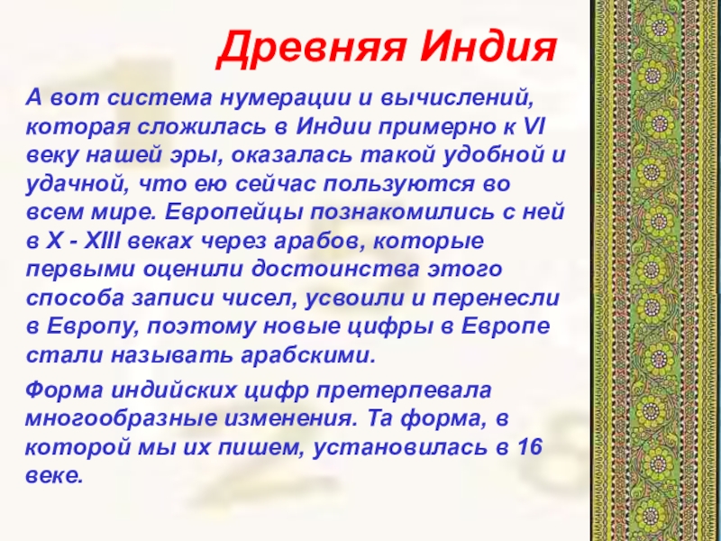 А вот система нумерации и вычислений, которая сложилась в Индии