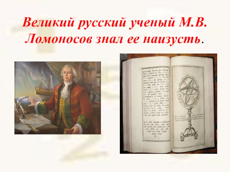 Слайд 31Великий русский ученый М.В. Ломоносов знал ее наизусть.
