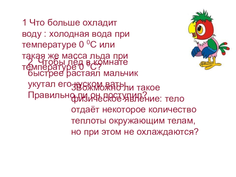 2 Чтобы лёд в комнате быстрее растаял мальчик укутал его куском ваты. Правильно ли он поступил?