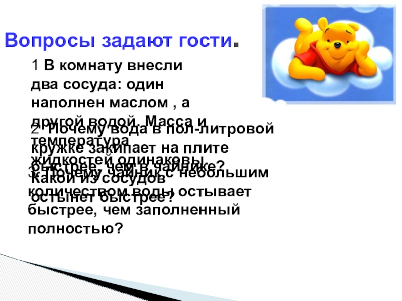 2 Почему вода в пол-литровой кружке закипает на плите быстрее, чем в чайнике?