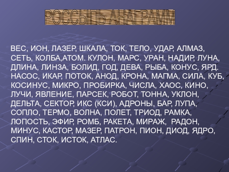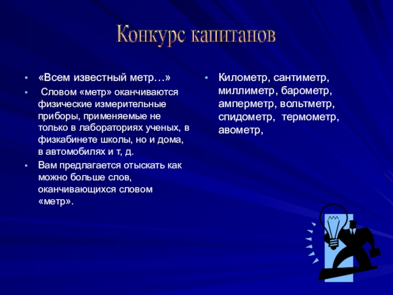 Километр, сантиметр, миллиметр, барометр, амперметр, вольтметр, спидометр, термометр, авометр,