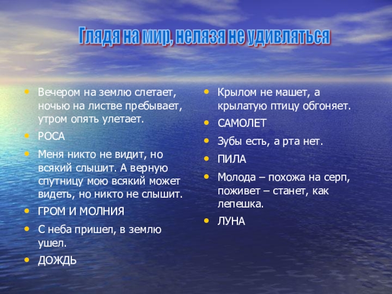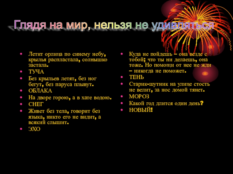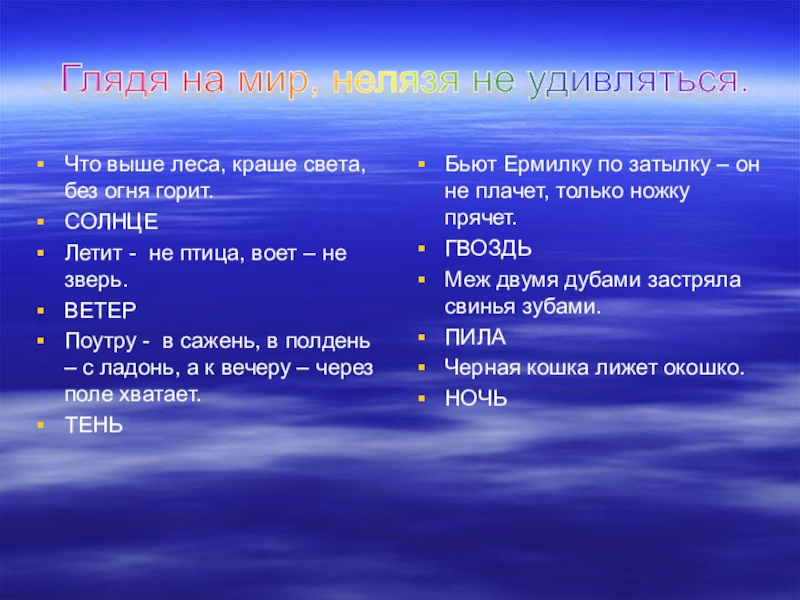 Над бабушкиной избой висит хлеба краюшка, собака лает, а достать не может.