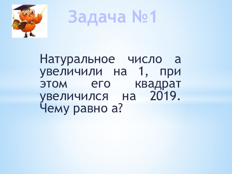 Слайд 3Натуральное число a увеличили на 1, при этом его квадрат увеличился
