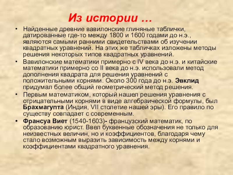 Значит, чтобы найти корни квадратного трехчлена, надо приравнять его к нулю, т.е. решить уравнение: