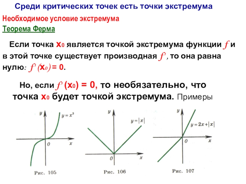 Но, если f' (х0) = 0, то необязательно, что точка х0 будет точкой экстремума. Примеры