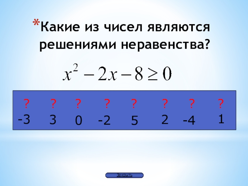 Какие из чисел являются решениями неравенства?1-30-15-4-20,5????????