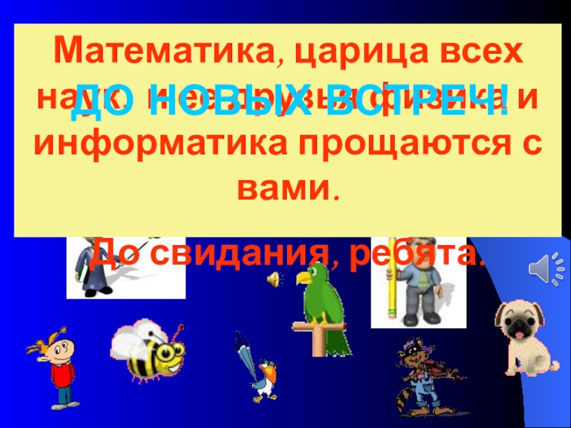 Слайд 54Математика, царица всех наук, и ее друзья физика и информатика прощаются