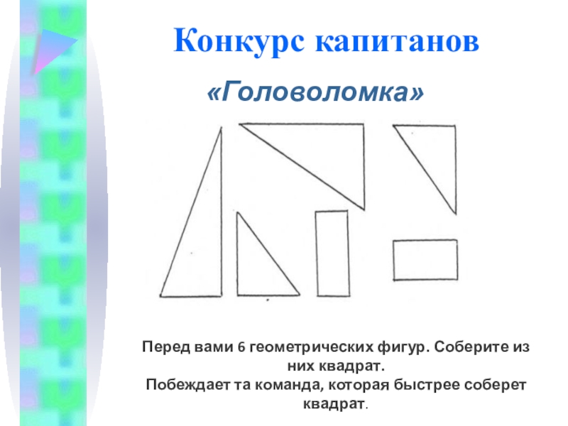 Перед вами 6 геометрических фигур. Соберите из них квадрат.