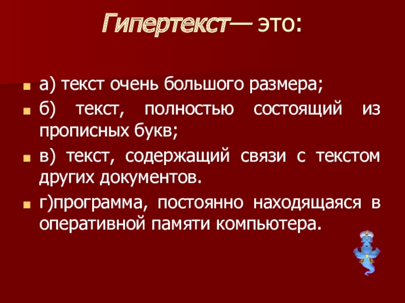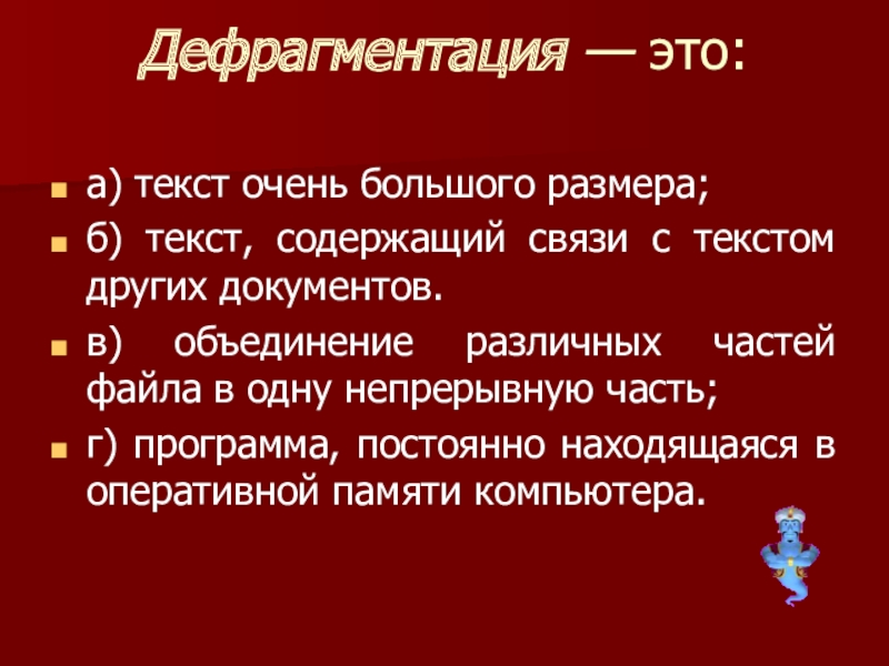 г)программа, постоянно находящаяся в оперативной памяти компьютера.