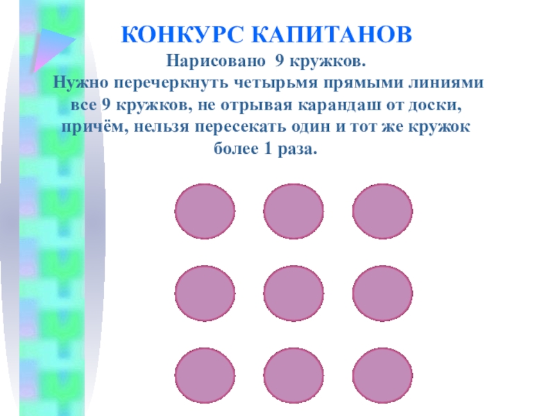 кружков, не отрывая карандаш от доски, причём, нельзя пересекать один и тот же кружок более 1 раза.