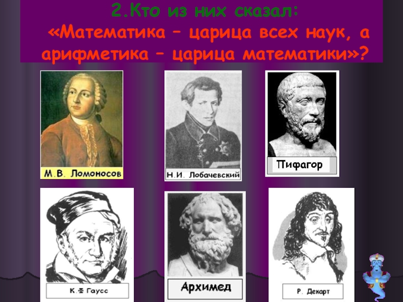 1.Кому принадлежат слова: «Вдохновение нужно в геометрии, как в поэзии»?