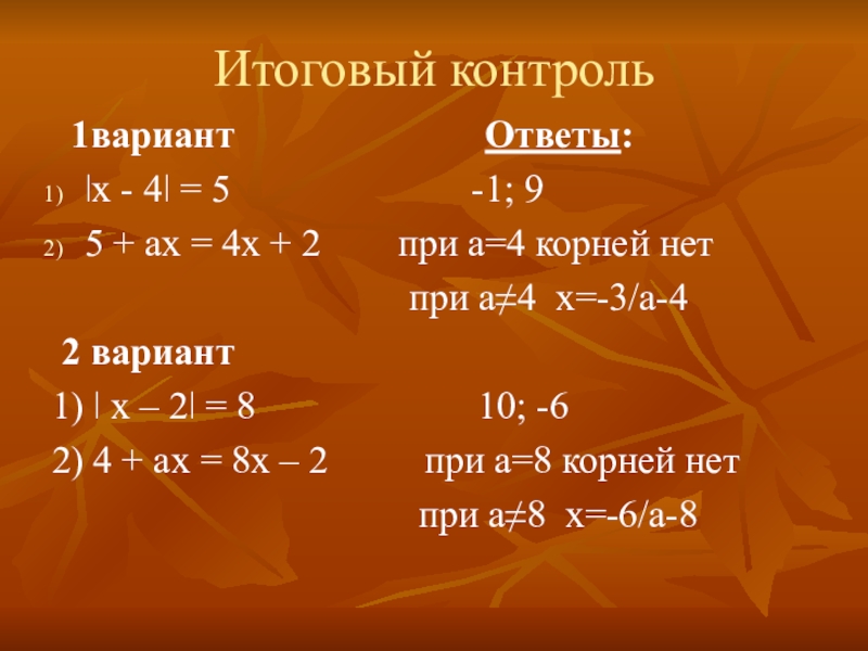 2) 4 + ах = 8х – 2 при а=8 корней нет