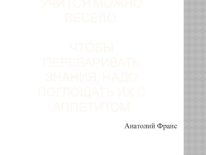 Учится можно весело.  Чтобы переваривать знания, надо поглощать их с аппетитомАнатолий Франс