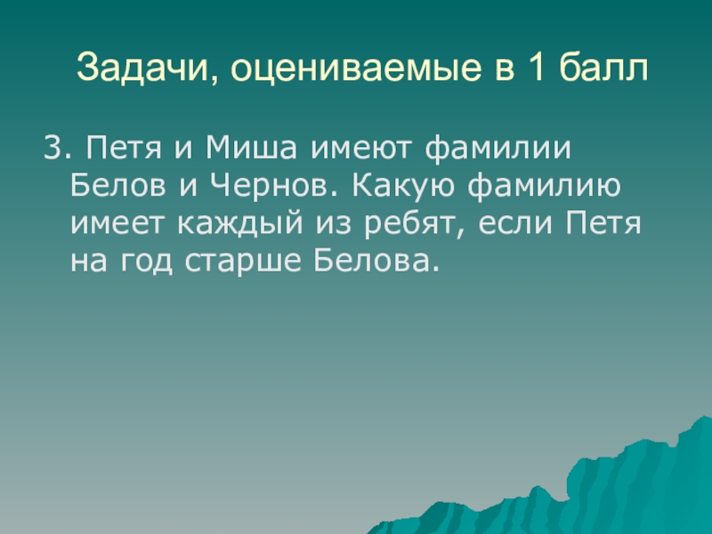 и Чернов. Какую фамилию имеет каждый из ребят, если Петя на год старше Белова.