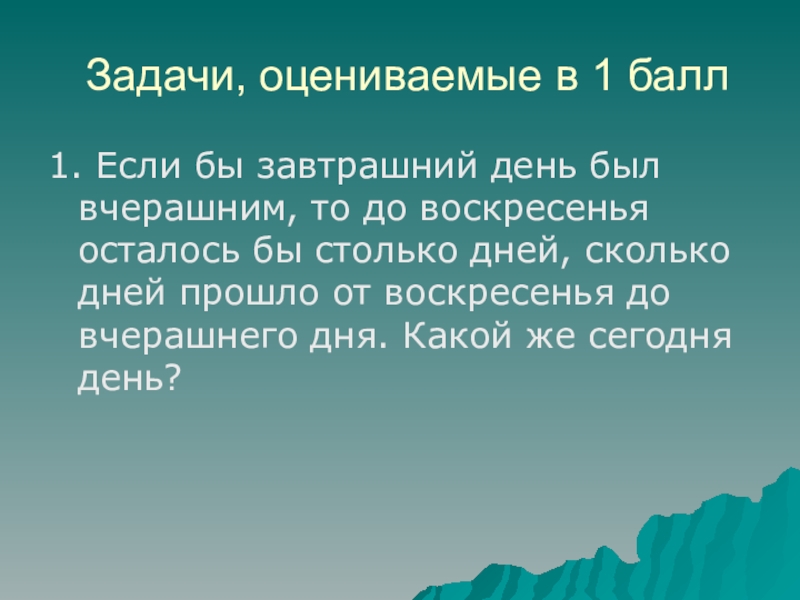 то до воскресенья осталось бы столько дней, сколько дней прошло от воскресенья до вчерашнего дня. Какой же сегодня день?