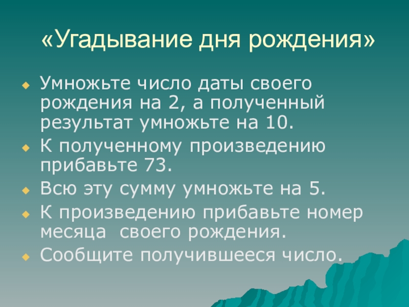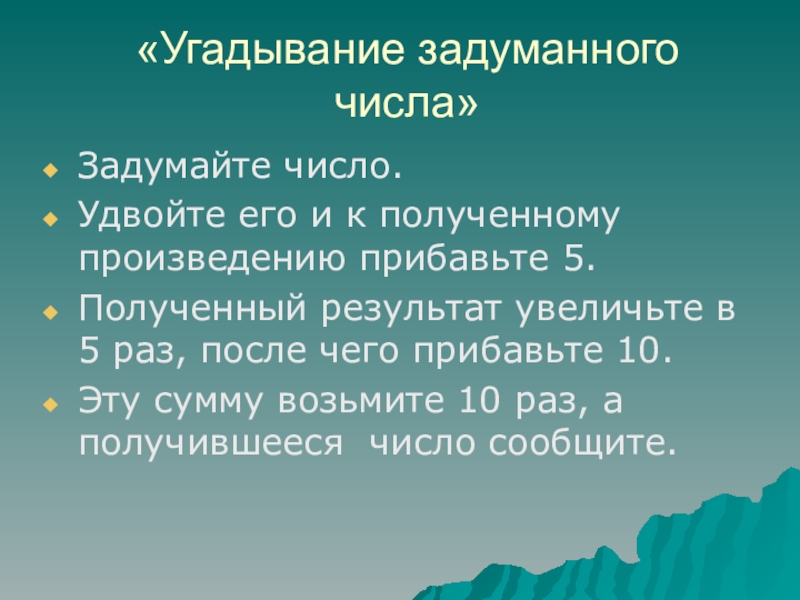 Полученный результат увеличьте в 5 раз, после чего прибавьте 10.