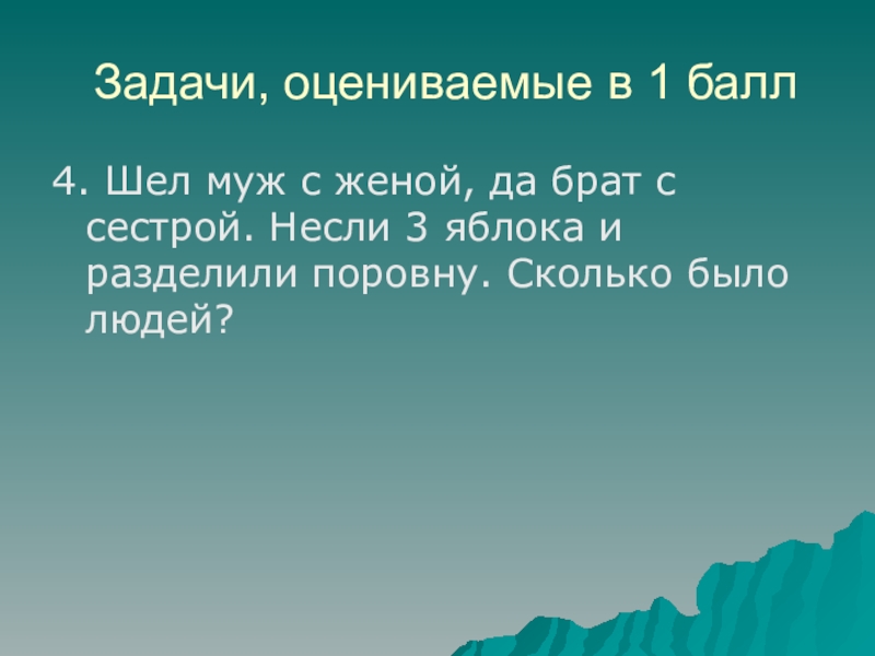 с сестрой. Несли 3 яблока и разделили поровну. Сколько было людей?