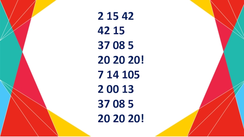 Слайд 132 15 42 42 15 37 08 5 20 20 20! 7 14 105 2 00