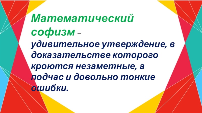 Математический софизм –удивительное утверждение, в доказательстве которого кроются незаметные, а подчас и довольно тонкие ошибки.