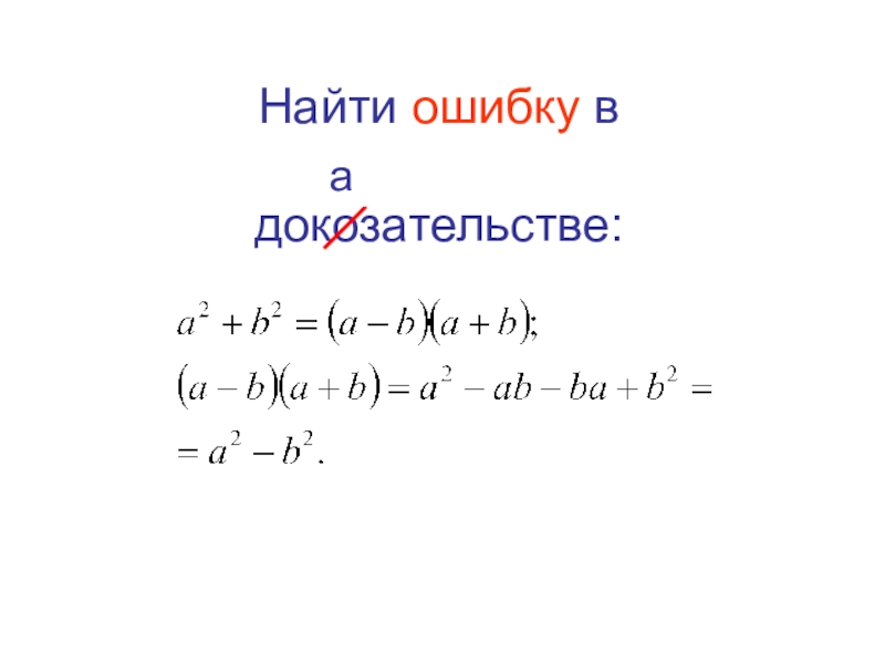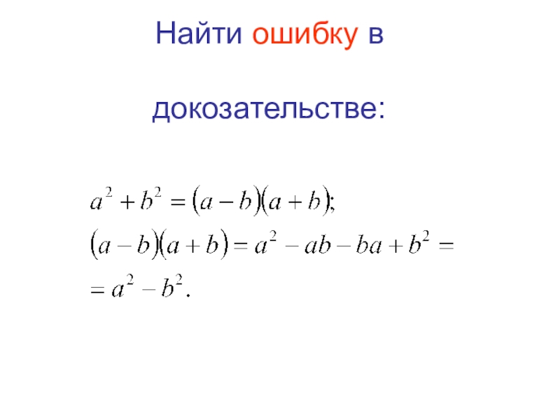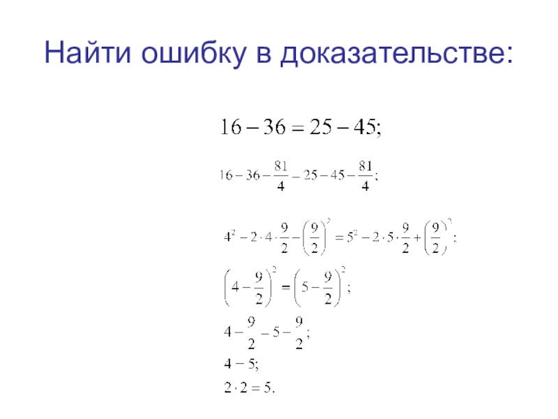 Слайд 1Найти ошибку в доказательстве: