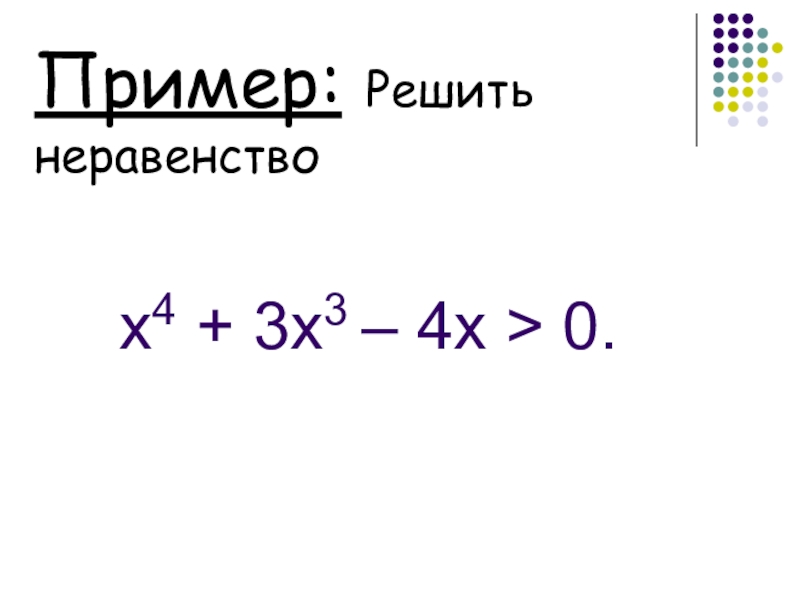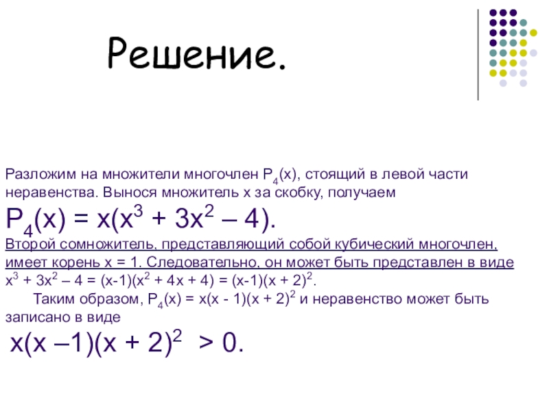 Решение. Разложим на множители многочлен Р4(х), стоящий в левой части неравенства (*). Вынося множитель х за скобку, получаем
