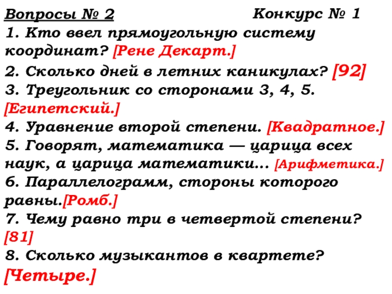 8. Сколько музыкантов в квартете? [Четыре.]