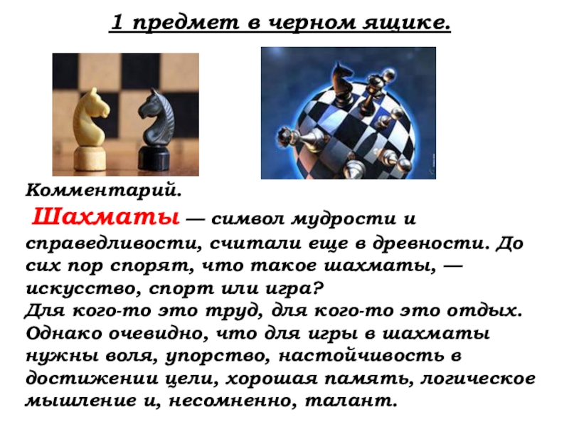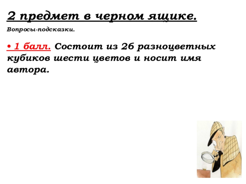 Слайд 381 предмет в черном ящике.