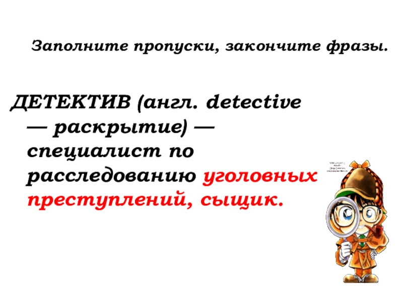 ДЕТЕКТИВ (англ. detective — раскрытие) — специалист по