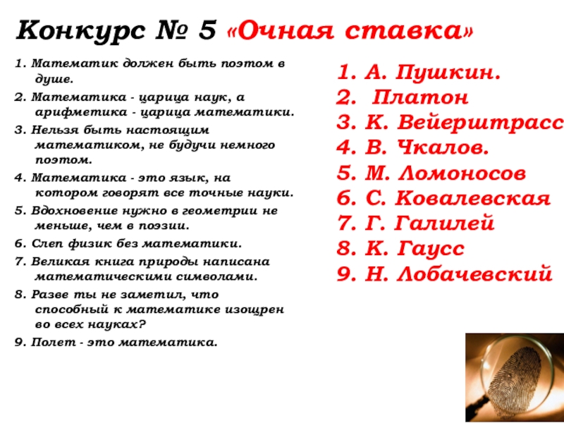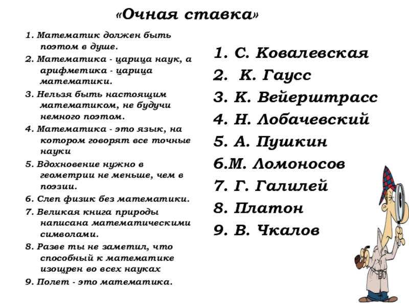 Слайд 31 «Очная ставка»