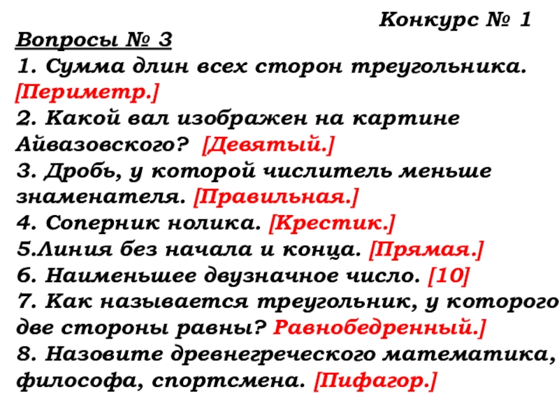 8. Назовите древнегреческого математика, философа, спортсмена. [Пифагор.]