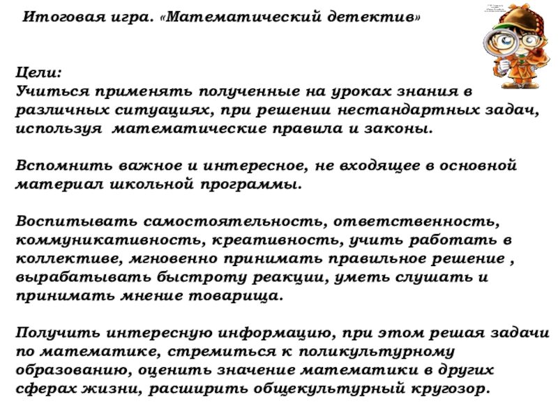 Слайд 3Итоговая игра. «Математический детектив»