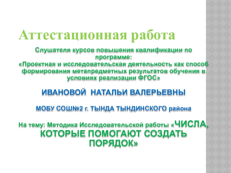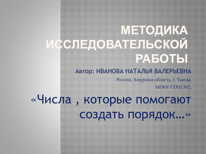 На тему: Методика Исследовательской работы «ЧИСЛА, КОТОРЫЕ ПОМОГАЮТ СОЗДАТЬ ПОРЯДОК»