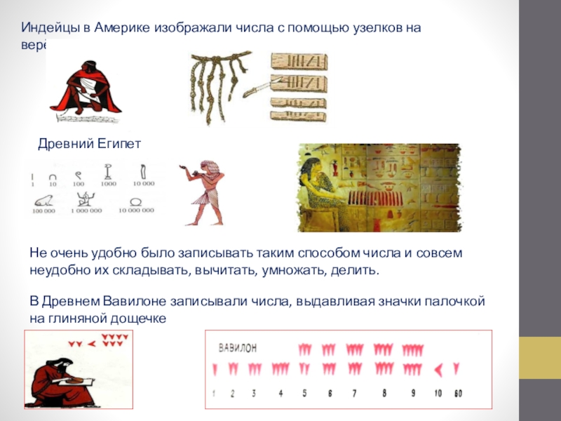 Слайд 5Индейцы в Америке изображали числа с помощью узелков на верёвках.