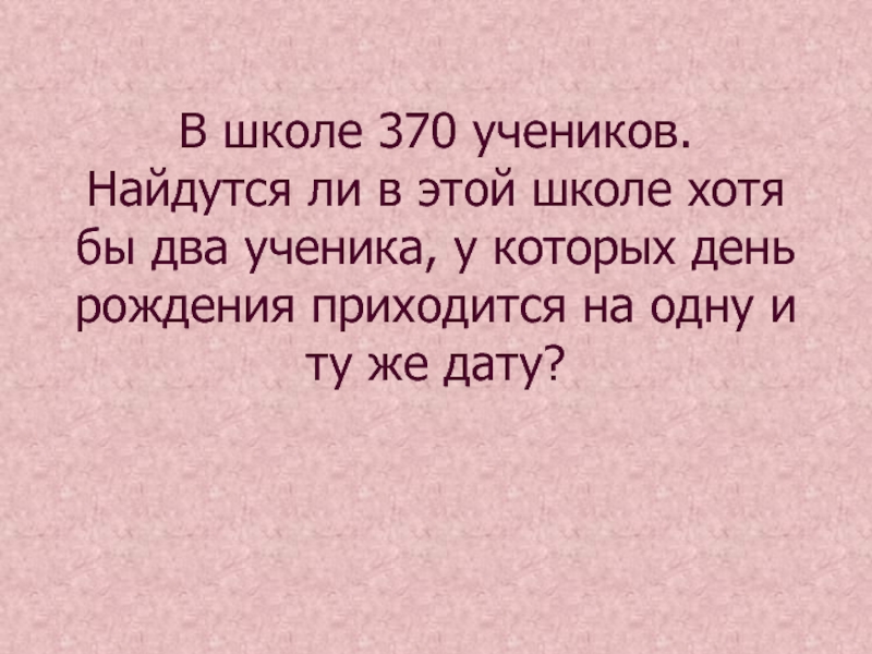 Слайд 3В школе 370 учеников. Найдутся ли в этой школе хотя бы