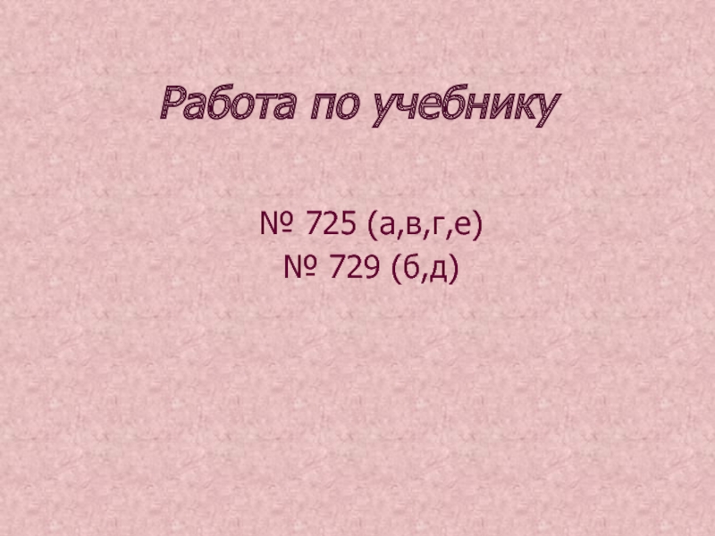 Работа по учебнику№ 725 (а,в,г,е)№ 729 (б,д)