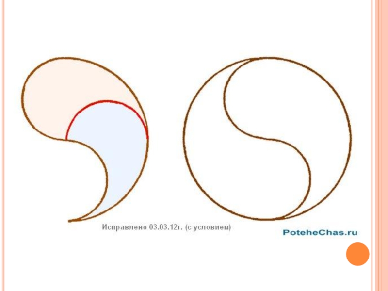 Запятая.	На рисунке изображена фигура в виде запятой. При помощи одной кривой линии разделите эту фигуру на две