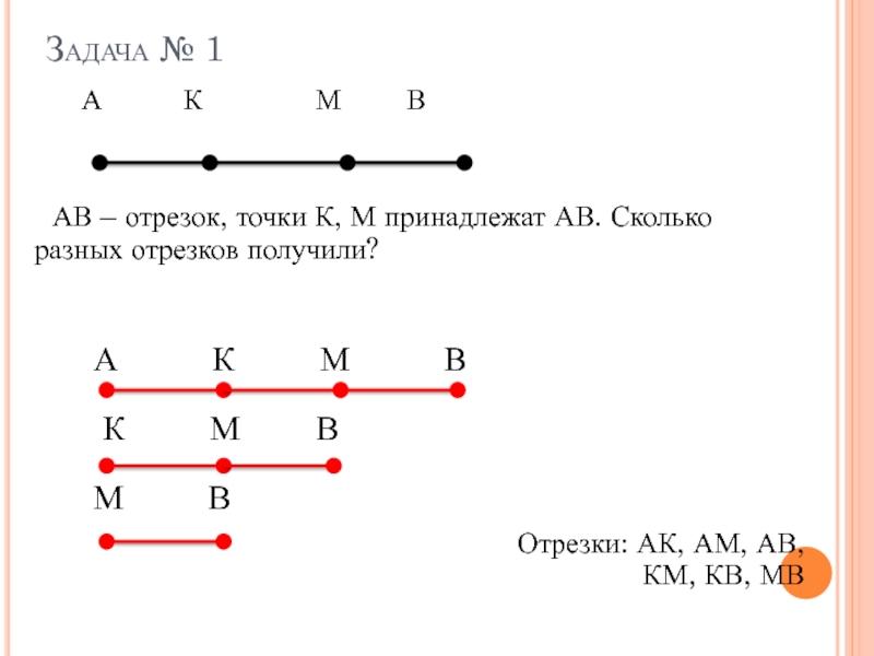 АВ – отрезок, точки К, М принадлежат АВ. Сколько разных отрезков получили?