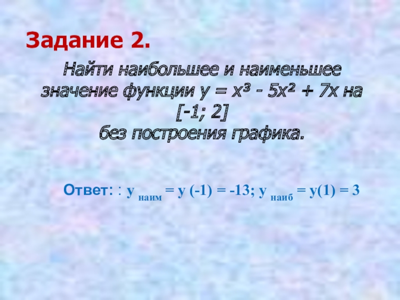 Ответ: : у наим = у (-1) = -13; у наиб = у(1) = 3