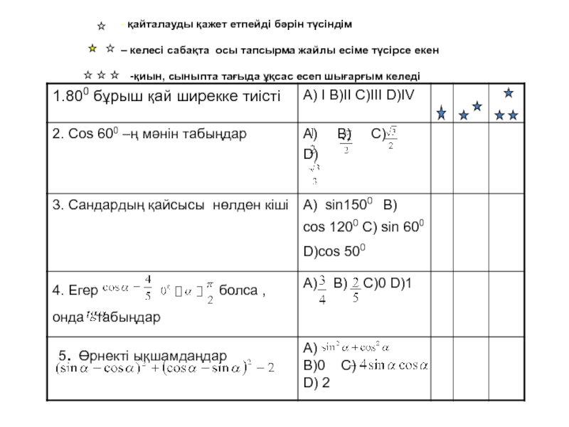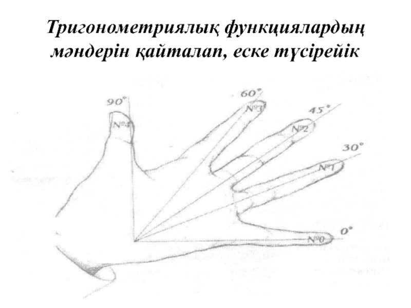 Слайд 4Тригонометриялық функциялардың мәндерін қайталап, еске түсірейік
