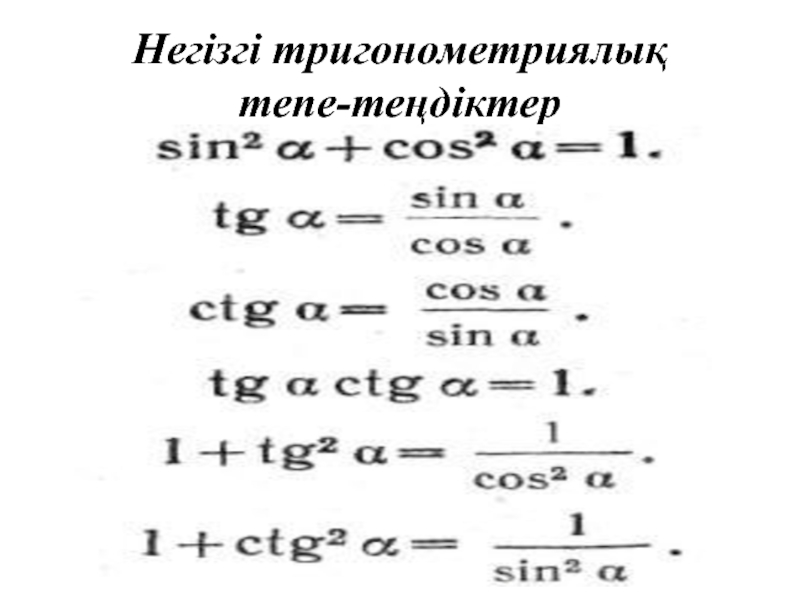 Слайд 6Негізгі тригонометриялық тепе-теңдіктер