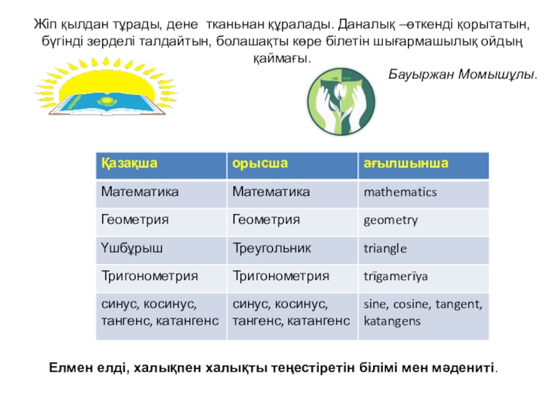 Елмен елді, халықпен халықты теңестіретін білімі мен мәдениті.